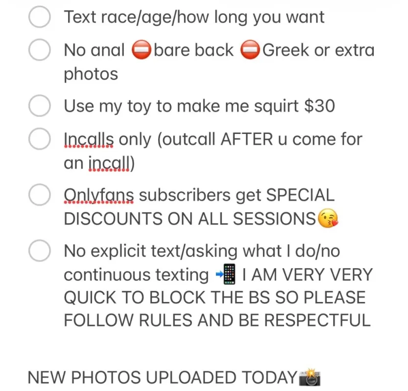 🥀An extraordinary temptation you don’t want to miss Slipping away never felt this Amazing 😽 Kitten invites new gentlemen to indulge in a private, sensual incall experience filled with heavy tension, slow teasing, and irresistible eye contact. 🐾 Body-to-body closeness 🐾 Sultry touches & seductive energy This special is designed to leave you wanting more, not rushing out the door. 🚫 No kissing 🚫 No bare ✔ Clean, discreet, respectful encounters only ⏳ Available for a very limited time Once the window closes… so does the temptation 💄 Serious inquiries only. Message now and let Kitten misbehave responsibly 🖤 🐾 I promise you this kitten 🐾loves to get wet 💦 So come slip and slide and let me take you on a ride 🥵 🛑No aa 🛑No Greek anal 🛑No bare anything 🛑No vulgar language 📸Extra photos via cashapp (not sending free extras) I’m available for incalls in my hotel 🏨 room safe clean 🧼 and discreet 🤫 Photo date verification/tattoos don’t lie 💯